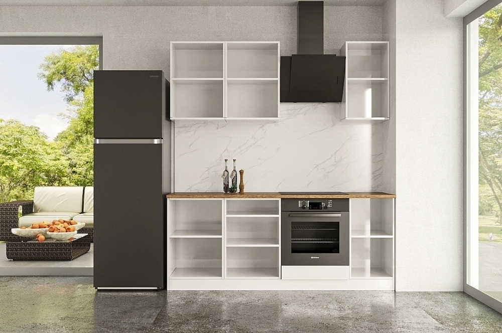 Ручки, столешница, стеновая панель, мойка, смеситель и бытовая техника продаются отдельно.